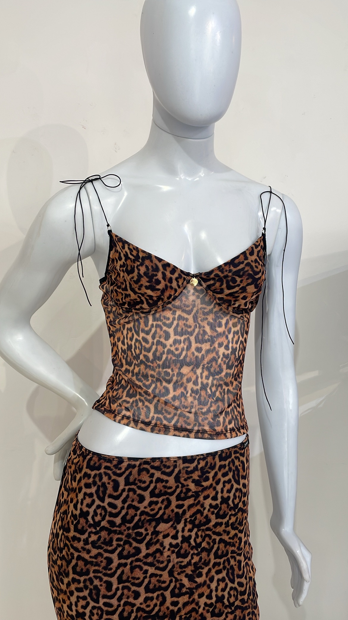Design Oncene, feito com tecido de tule estampado, possui aro meia-taça e alça fina regulável de amarrar