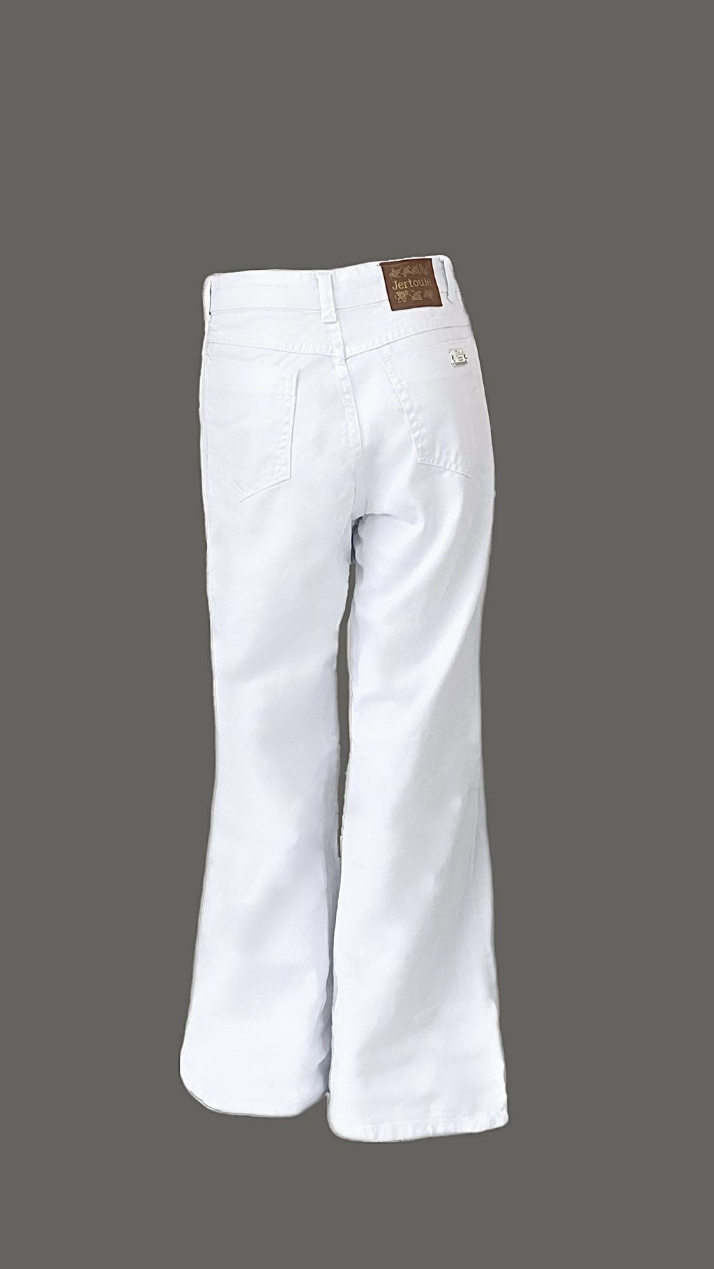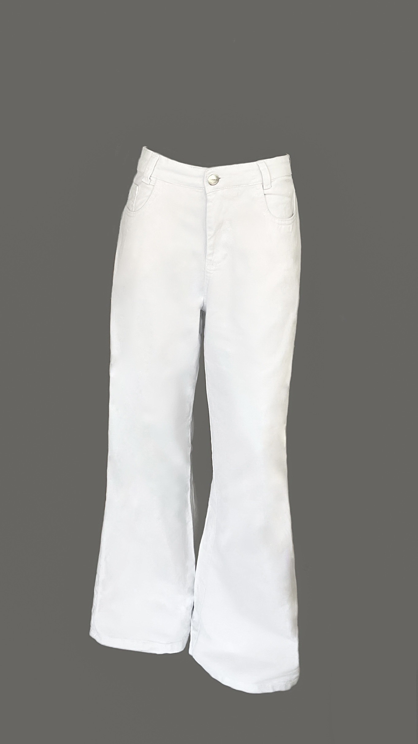 Calça Jeans Wide Leg Branco, A tradução do termo “wide leg” significa “perna larga” e, como já indica, ela tem um caimento mais largo que segue até as barras. Corte de cintura média, para usar o modelo de cintura baixa, indicamos escolher um tamanho acima