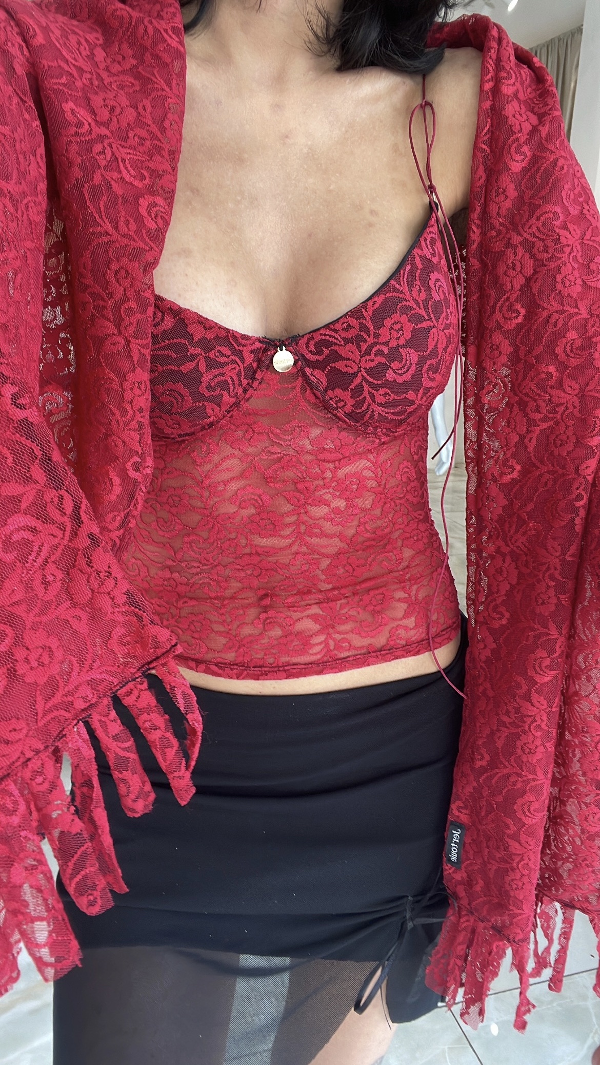 Design Bordue, feito para montar Looks, a Blusa Bordue acompanha aro meia-taça e forro no busto preto tecido de microfibra com poliamida e Renda com elastano, cintura e costas com transparência. Alça fina de amarrar (antes de fazer o lacinho, realize um nó para fixar a alça na medida do seu ombro)