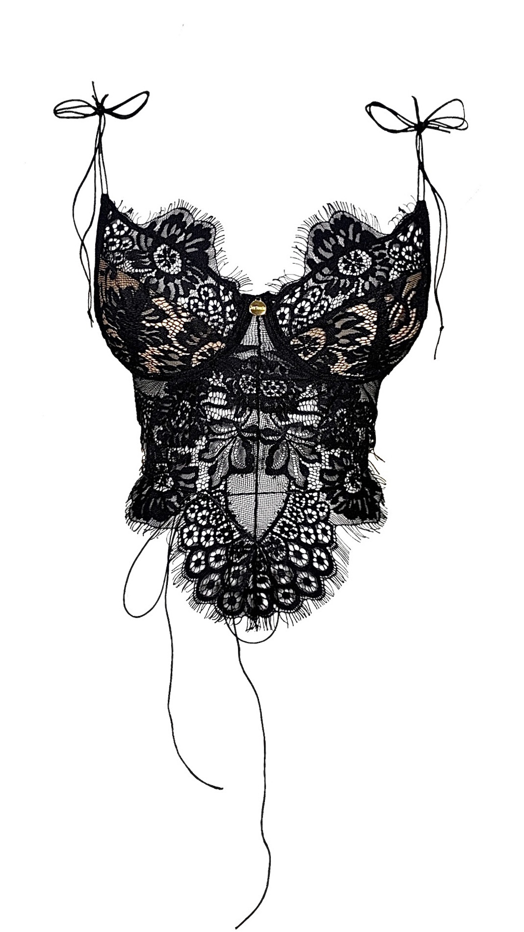 Design Lillule, criação inspirada na Libélula, um dos insetos que mais fascinam e despertam a curiosidade do ser humano. A libélula simboliza transformação e iluminação. Renda de Noiva, alta qualidade e durabilidade, acompanha aro meia-taça, com forro no busto (bege). Para montar seus Looks com um Estilo em forma de Arte