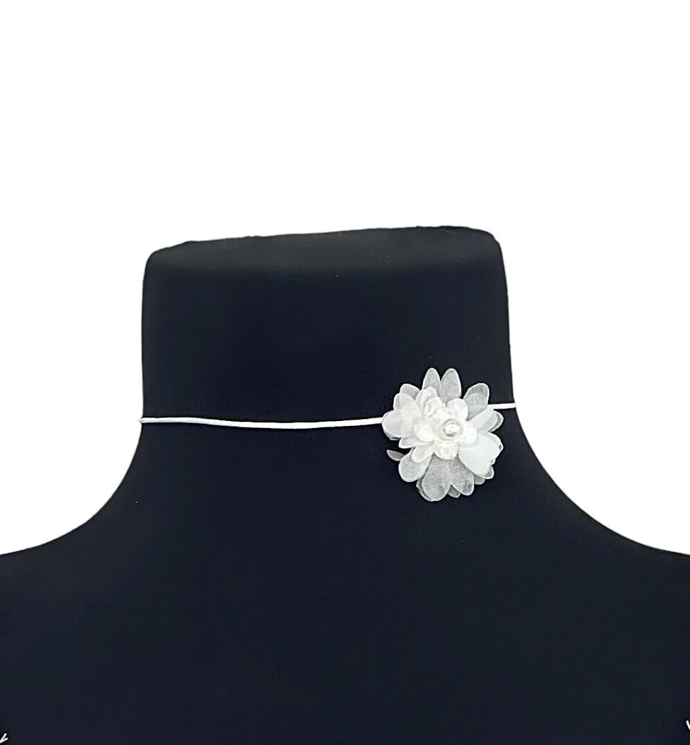Design Choker Rosa Branca, um acessório pode ser usado no pescoço, para o cabelo, amarrar como pulseira e até mesmo na bolsa. Transforme seus Looks em um charme romântico.