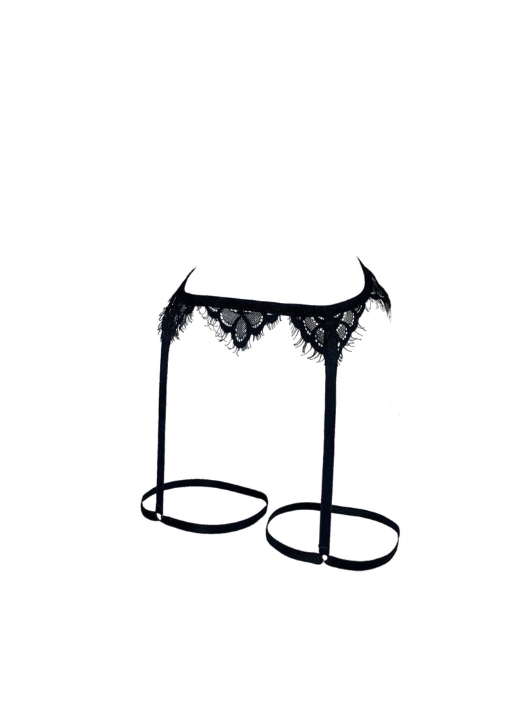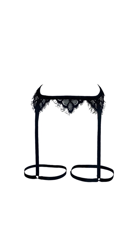 Este item é composto de: Cinta liga de renda em poliamida Jartié Taille e Calcinha Jartié (fio dental) feita de renda e tecido microfibra.