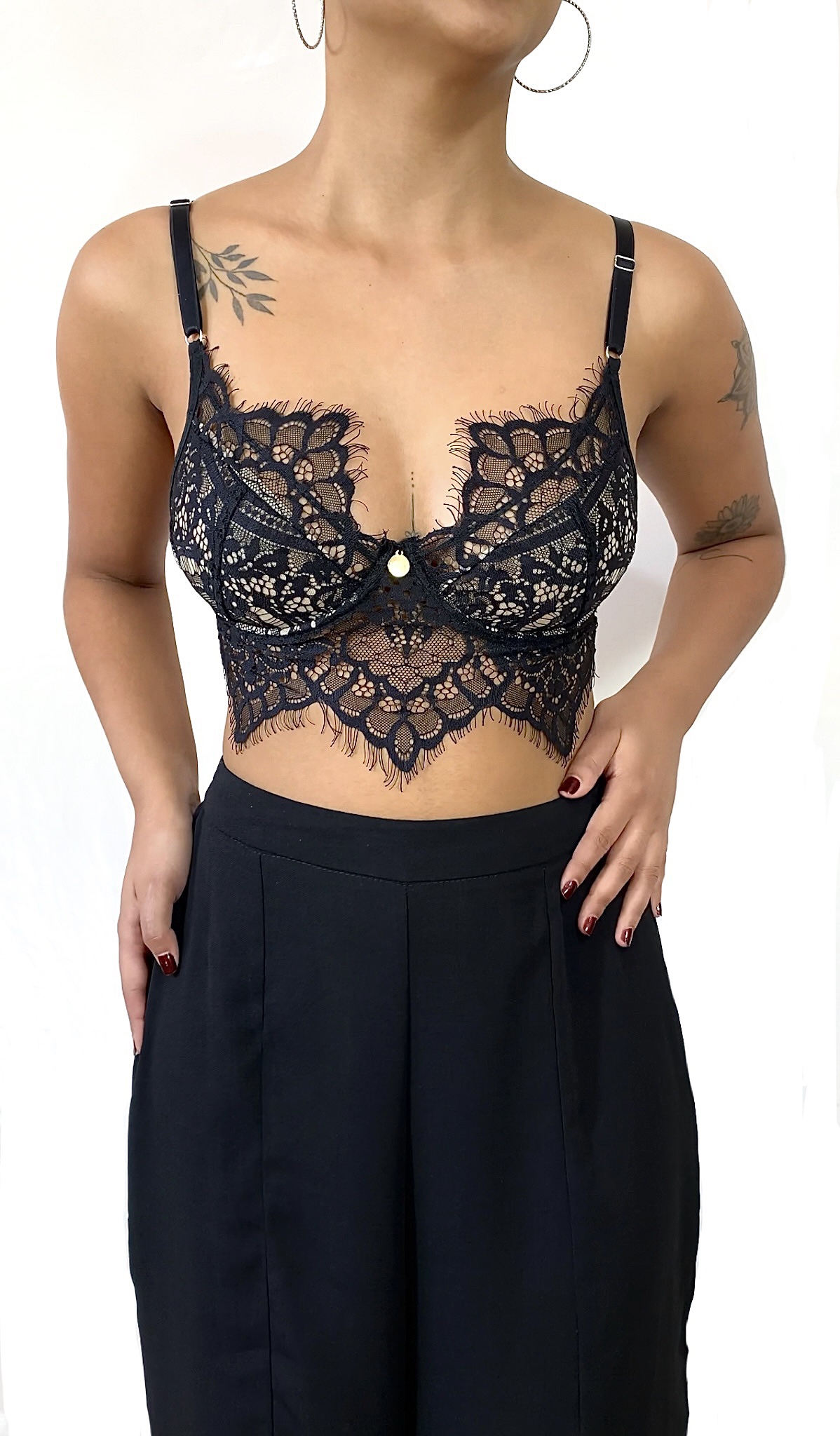 Com aro no busto, modelagem exata para sustentar. A Renda não possui elastano proporcionando um UP no busto.