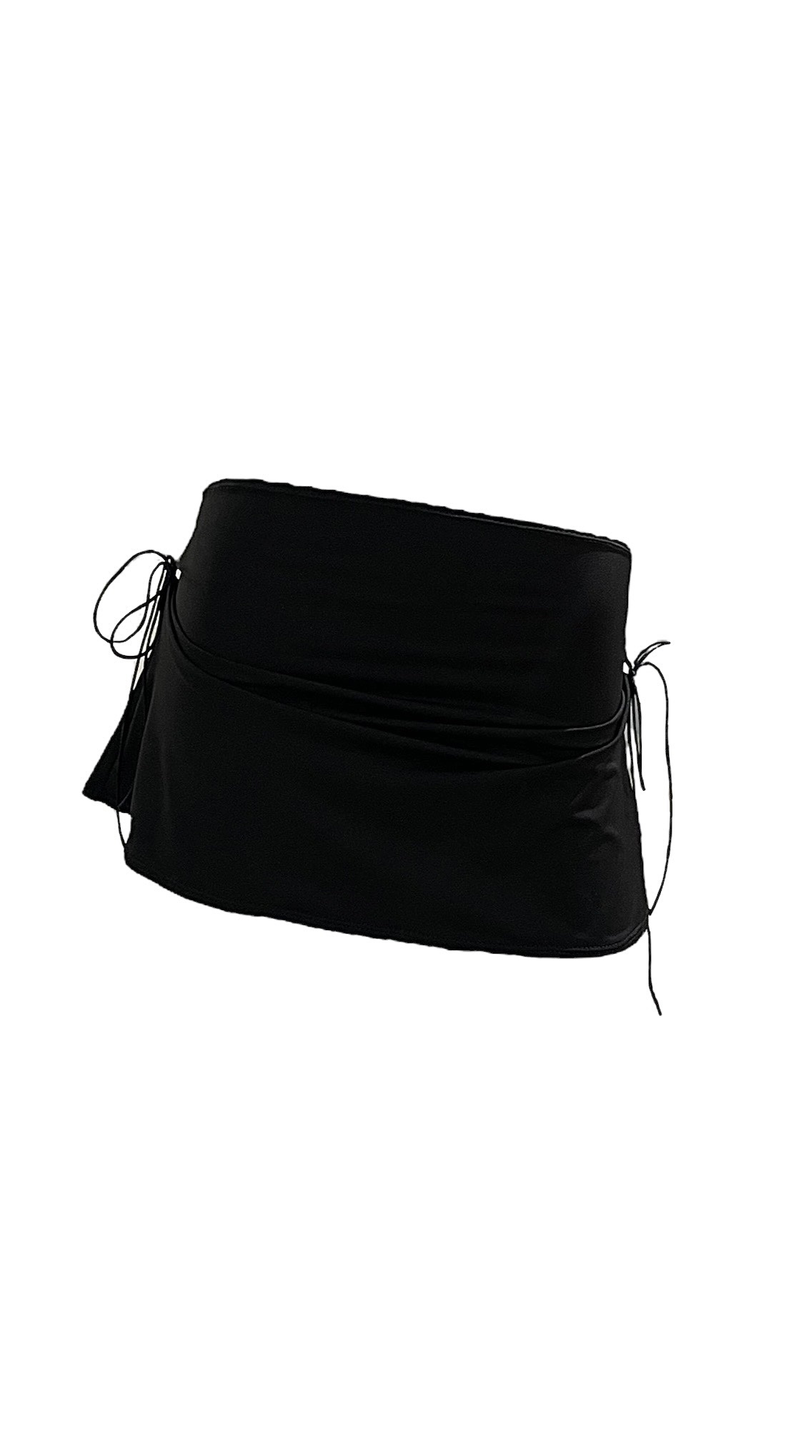 Design Mini Saia Jer, feito com tecido de microfibra com poliamida. – Medida minissaia com laços amarrado nas laterais: