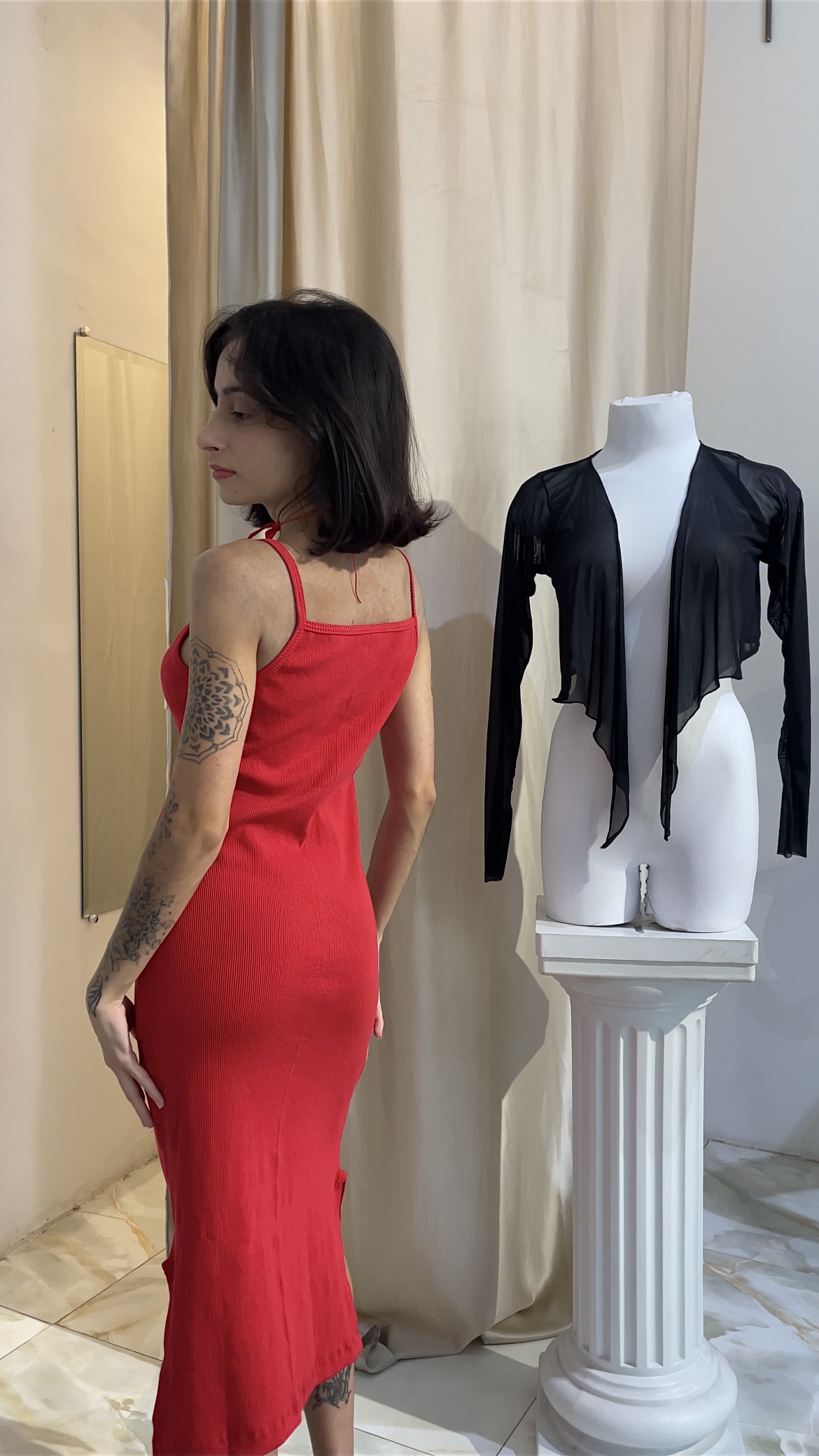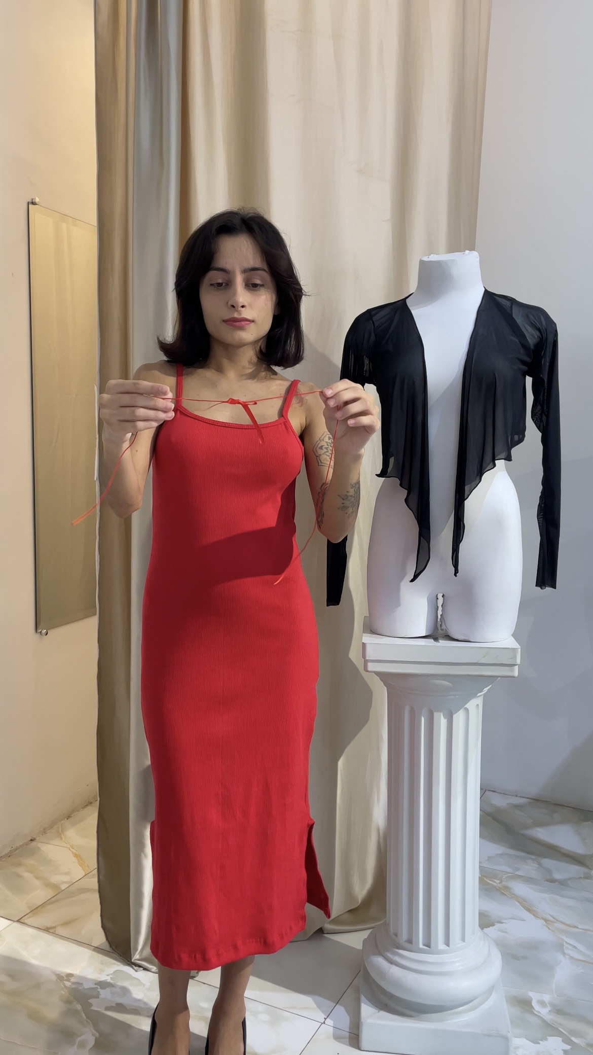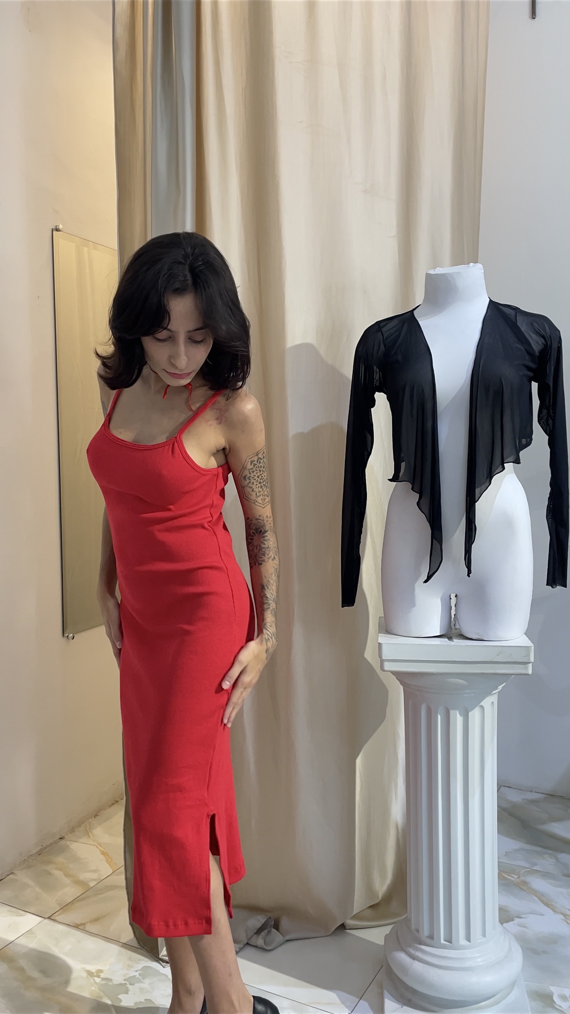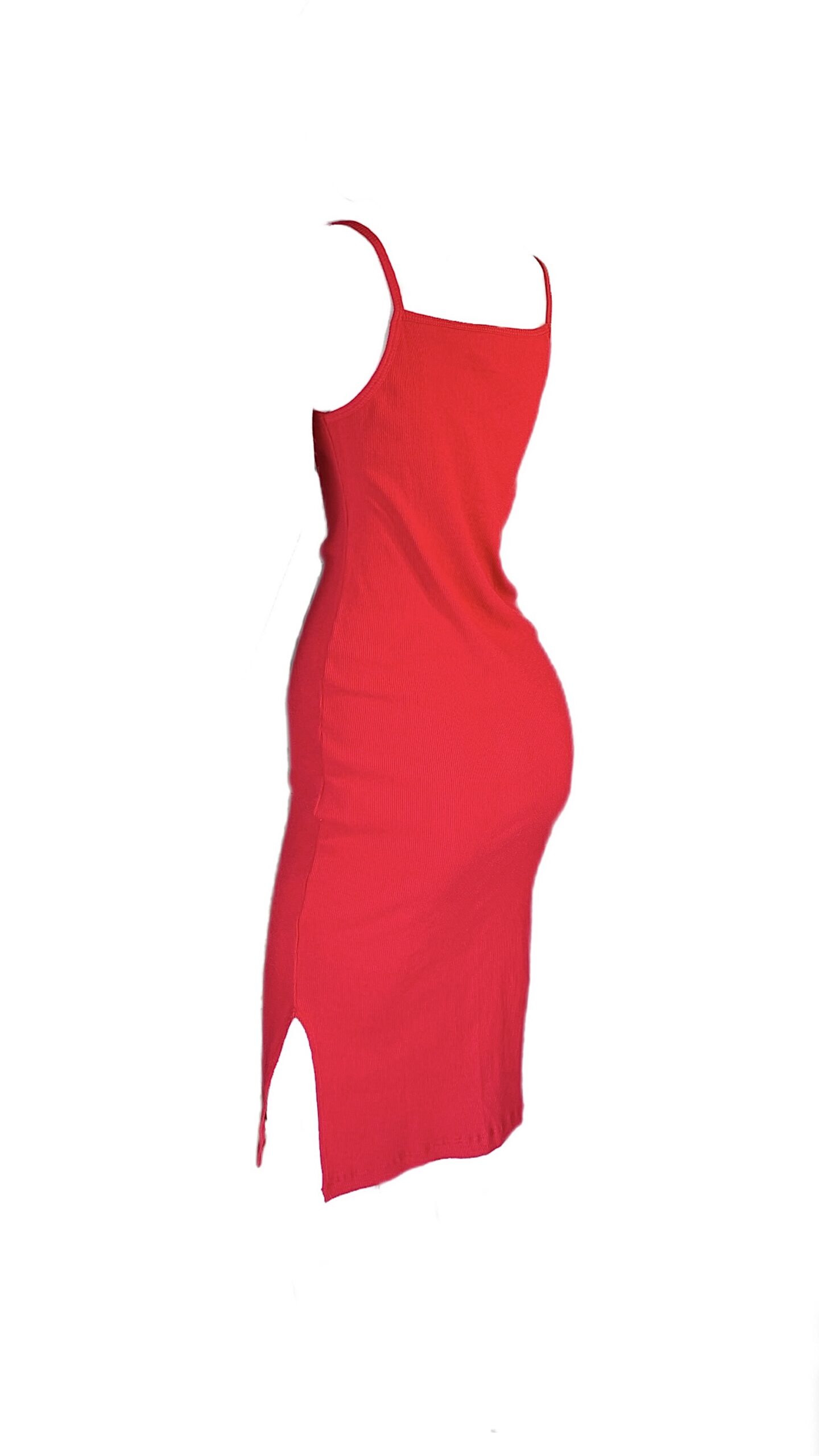 Design feito com tecido canelado, confortável com elastano e fenda, corte Midi